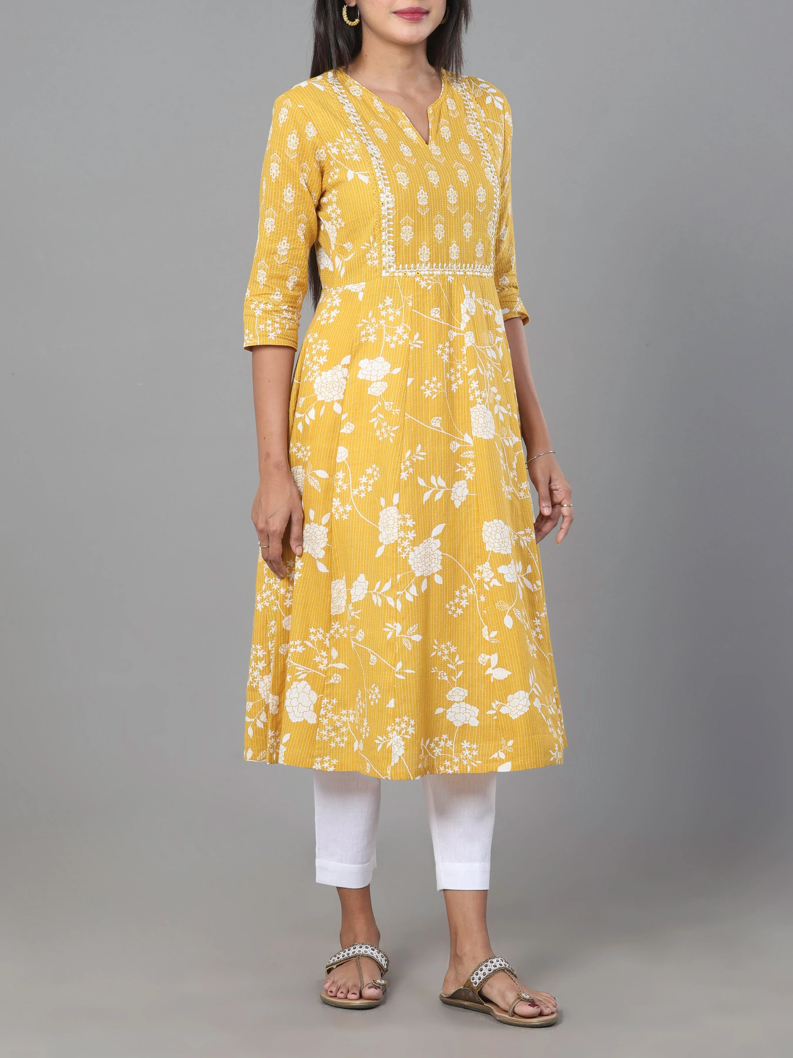 Mustard Yellow Pure Cotton Kurti with Embroidery features a bright, vibrant color complemented by intricate embroidery. Made from soft, breathable cotton, it offers comfort and style for any occasion. Ideal for casual or festive wear, this kurti adds a touch of elegance to your look.