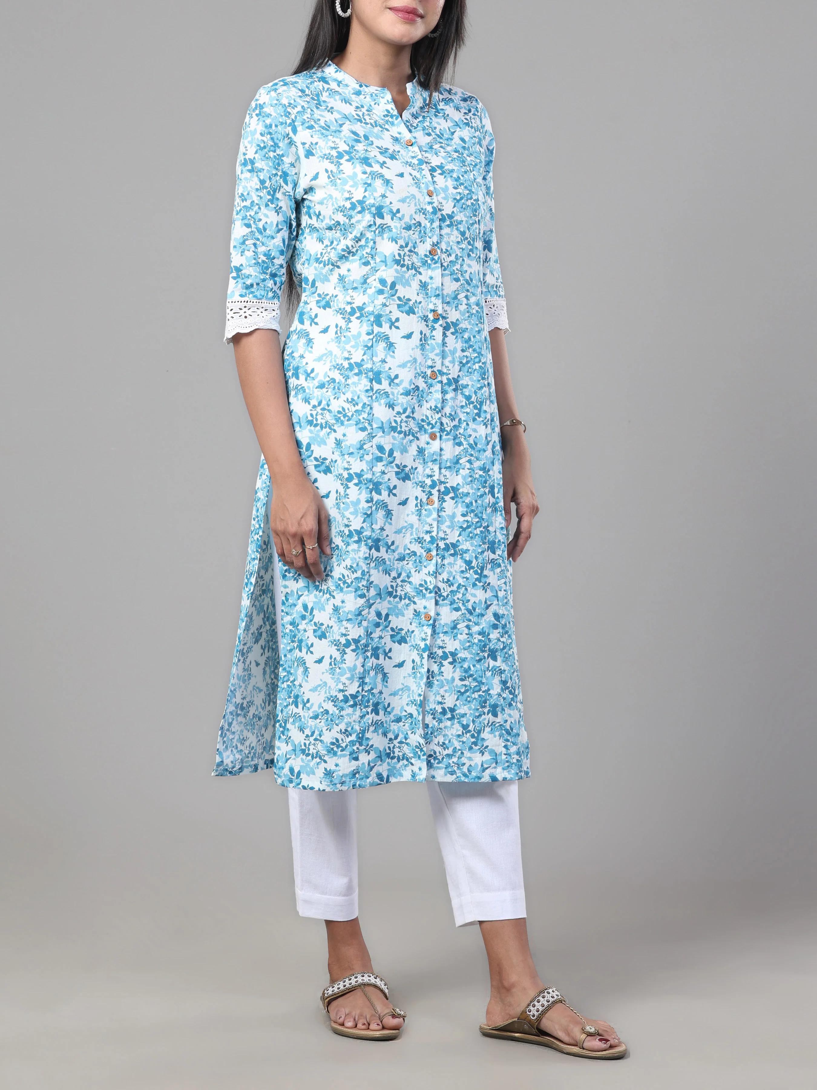 White cotton falx printed kurti features a fresh and elegant design with delicate prints, offering a stylish yet comfortable look. Made from soft, breathable cotton, it ensures all-day comfort. Perfect for casual outings or daily wear, this kurti is a versatile and chic addition to your wardrobe